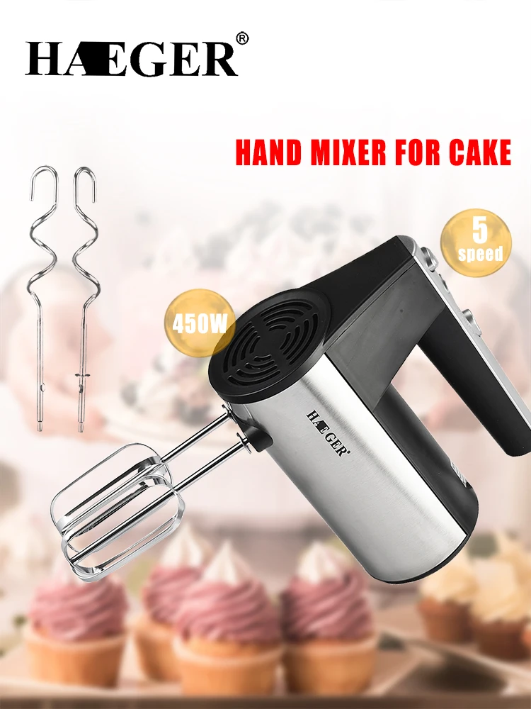 Миксер HAEGER электрический, 450 Вт, 5 скоростей, для приготовления торта, взбиватель яиц