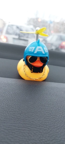 Особенности: Он издаст звук при ущипывании, материал мягкий, безопасный и прочный, качество утки хорошее, сырье безопасное, не вредит здоровью человека, С шлемом, воздушным винтом, солнечными очками, металлической цепочкой для ожерелья, очень круто. Отлично подходит для установки на капот автомобиля, зеркало заднего вида и т. д. также можно надеть детский шлем, когда они катаются на роликах, это действительно очаровательно.