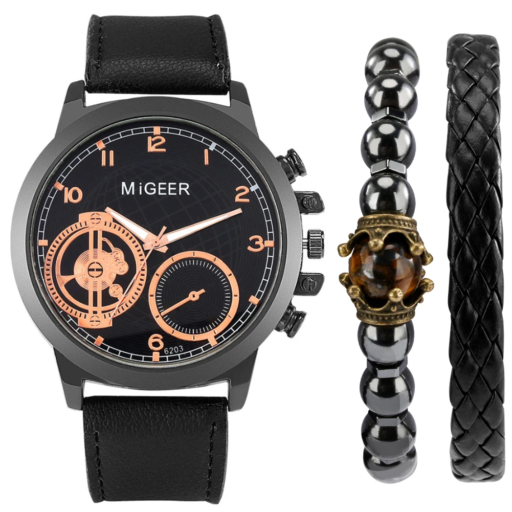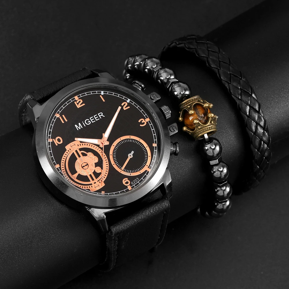 Набор модных мужских часов и браслетов, мужской черный выпуск из 3 ...