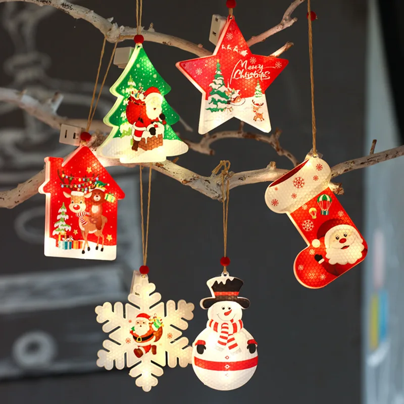 ◆ Светодиодный Рождественский гирлянда, висячие украшения, разработаны в 6 различных стилях, у нас есть элемент Санта-Клауса, элемент снеговика и многое другое, что соответствует теме Рождества, подходит для предстоящего рождественского праздника, выразите ощущение праздника.