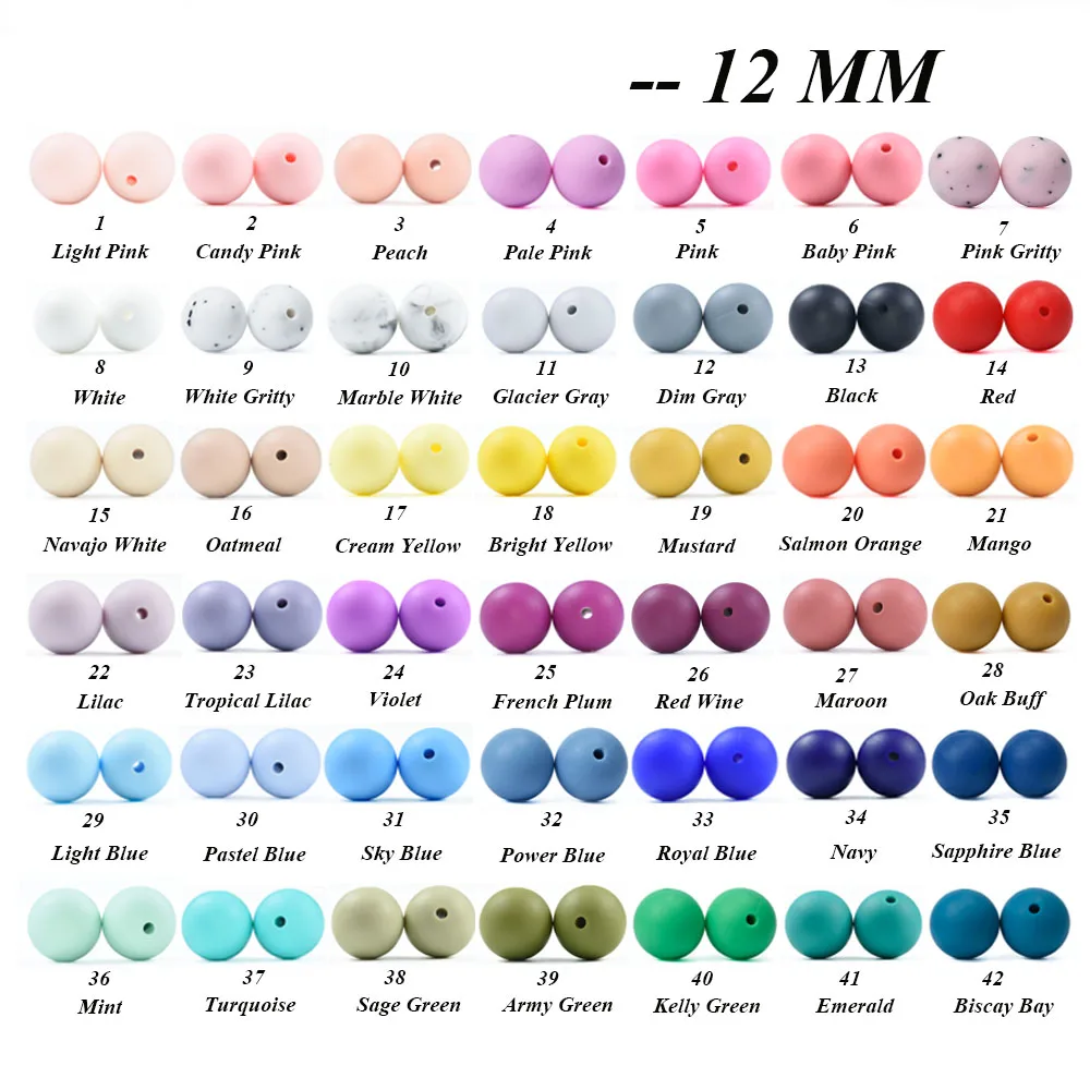 100 шт 12 мм детские круглые бусины силиконовый шар бисер ребенок прорезывание зубов круглые бусины DIY соски цепь клип Медсестра подарок 37 цветов