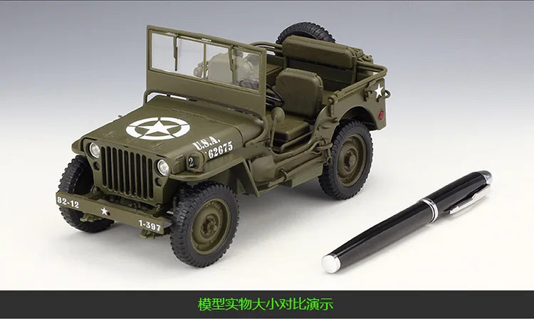 Модель автомобиля Willys MB, металлическая модель автомобиля, высокий уровень скрупулезности 1:18, статическая, с коробкой