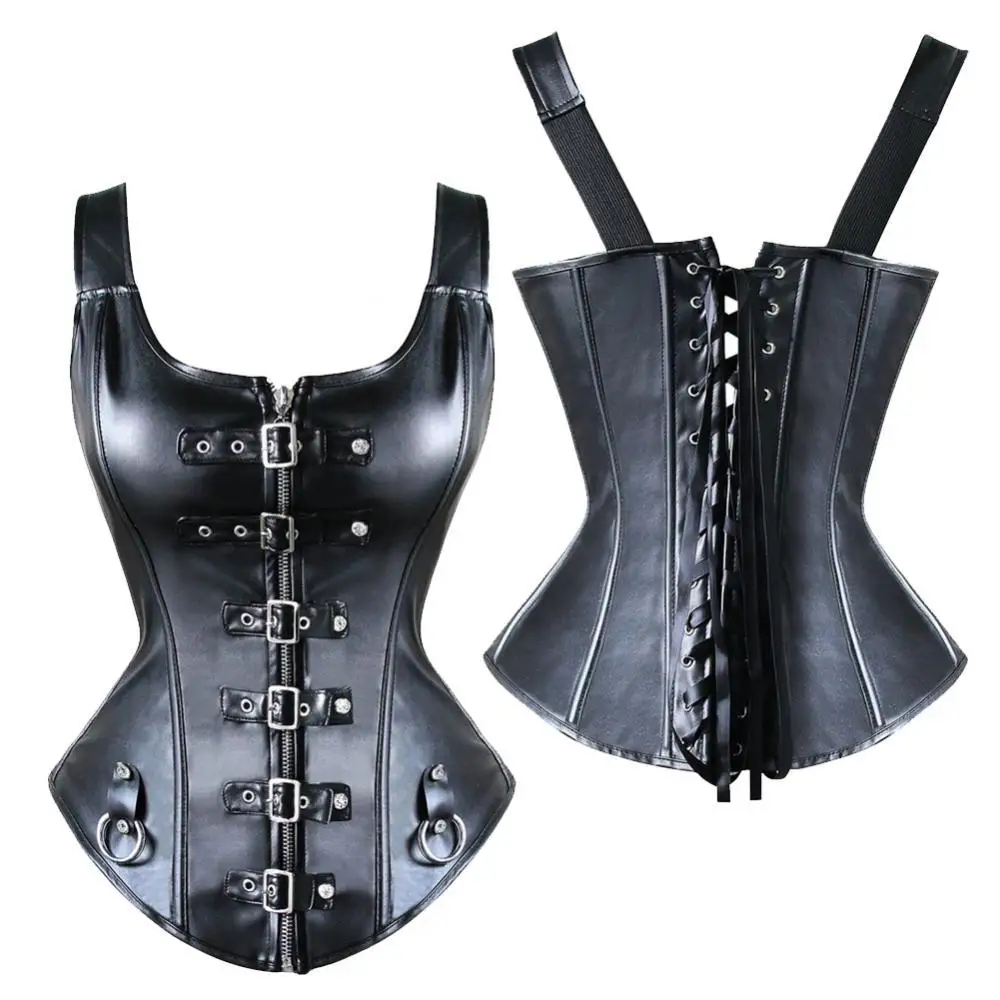 Женский корсет из искусственной кожи, Черный корсет на молнии с зас...