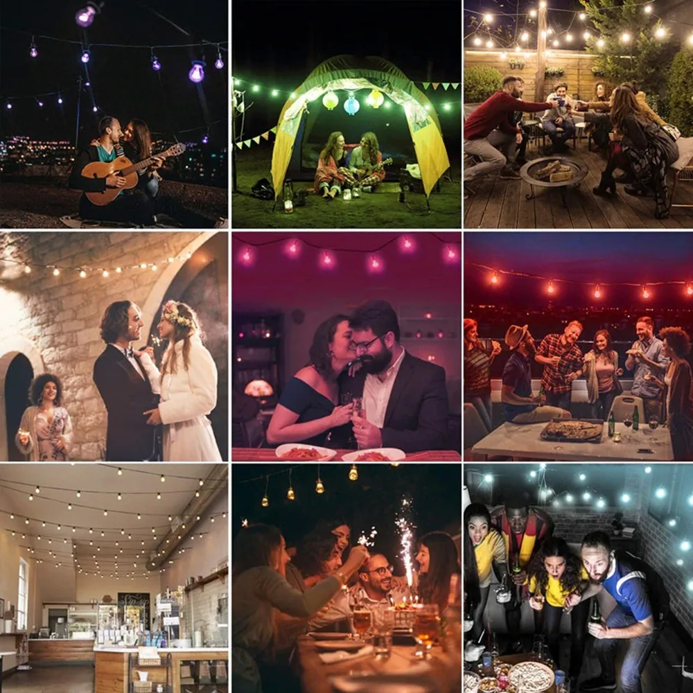 Светодиодная гирлянсветильник S14 RGB s E27, водонепроницаемая лампа-лента для наружного освещения, освещение для сада, патио, Рождества, праздника, свадьбы