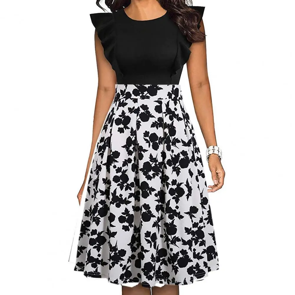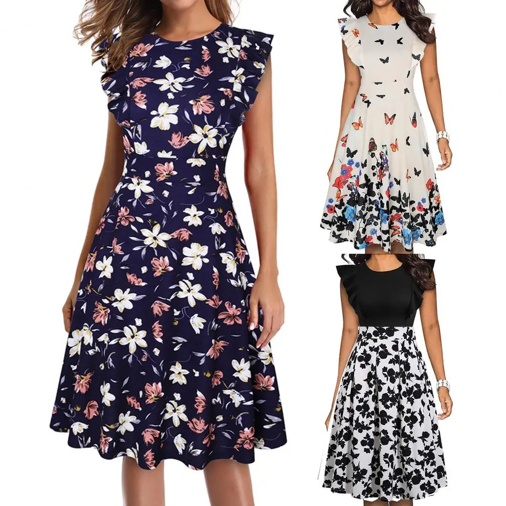 Женское платье-туника с цветочным принтом, мягкое и удобное ТРАПЕЦИЕВИДНОЕ ПЛАТЬЕ средней длины с круглым вырезом и расклешенными рукавами, одежда для работы, новинка 2021