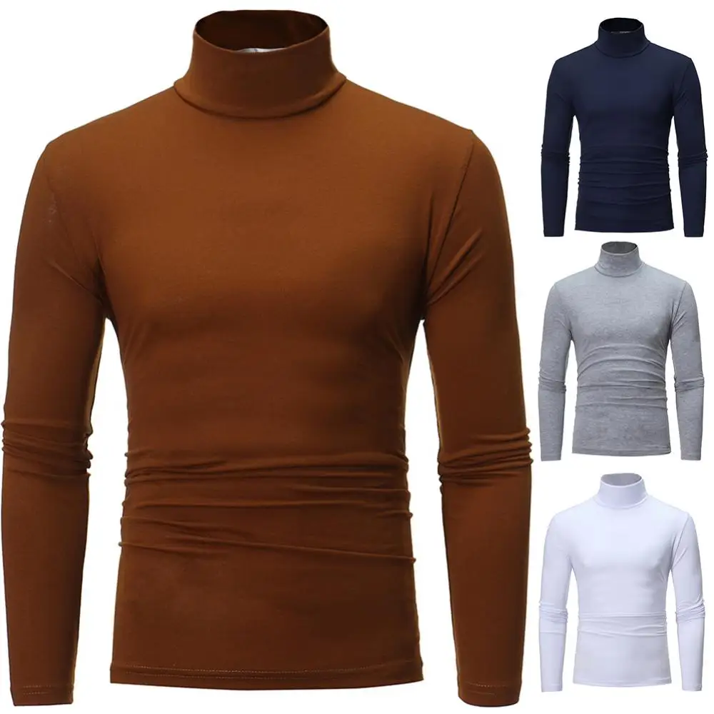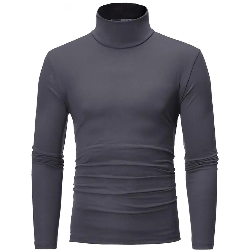 Мужской модный пуловер, однотонная приятная для кожи футболка с длинным рукавом и высоким воротом, Приталенная футболка, топ 2021 для повседневной жизни