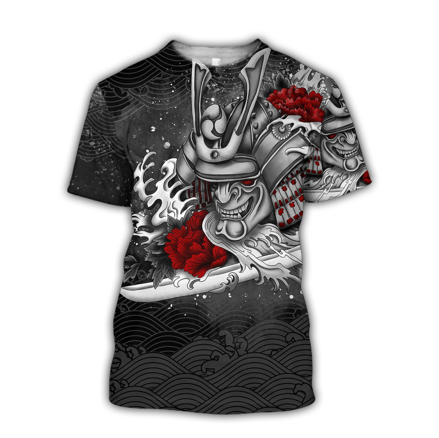 Футболка мужская универсальная с 3D-принтом самурая, тату, с коротк...