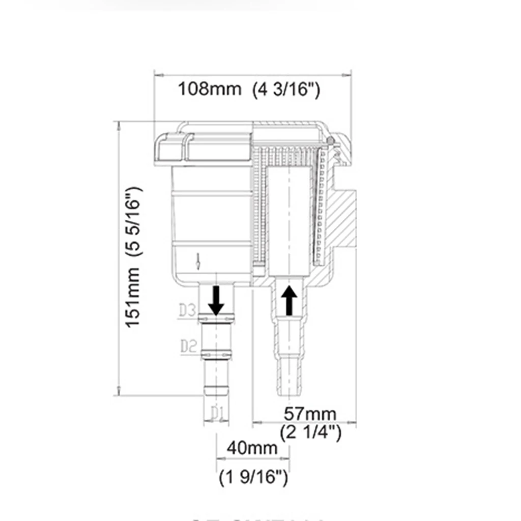 100% новый фильтр морской воды/фильтр.В основном используется для охлаждения двигателя с водозабором.Подходит для шланга размером 1 дюйм, 1,25 дюйма и 1,5 дюймов.Защищает двигатель от вредных частиц и мусора.Прозрачный верх позволяет легко просматривать фильтр.