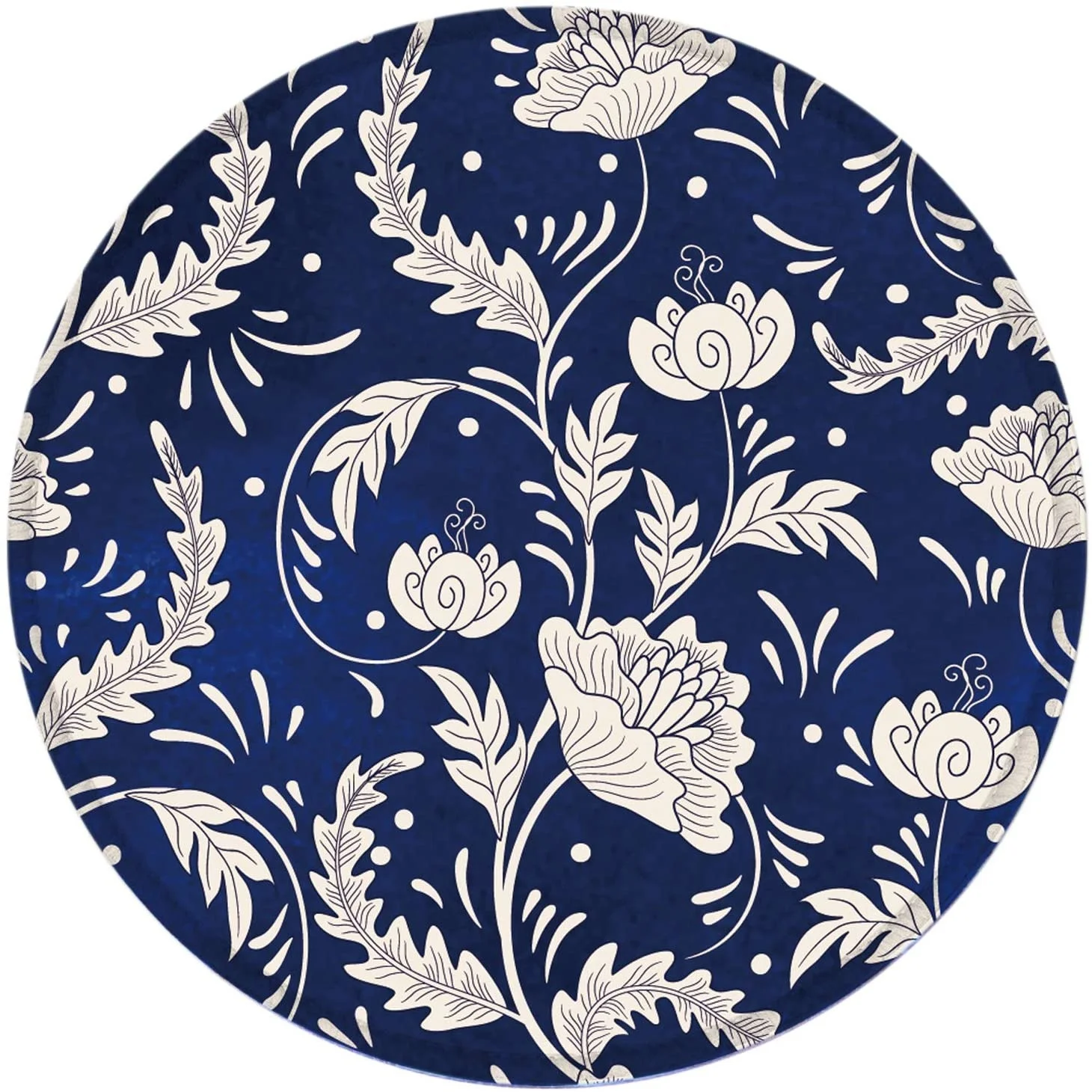 Коврик для мыши, нескользящий коврик для мыши с резиновой основой, игровые круглые коврики для мыши с изысканным цветком на синем фоне