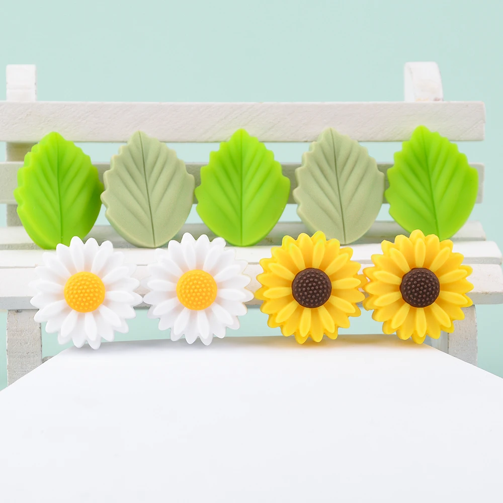 5 шт., силиконовые бусины LOFCA в виде маргаритки и подсолнуха