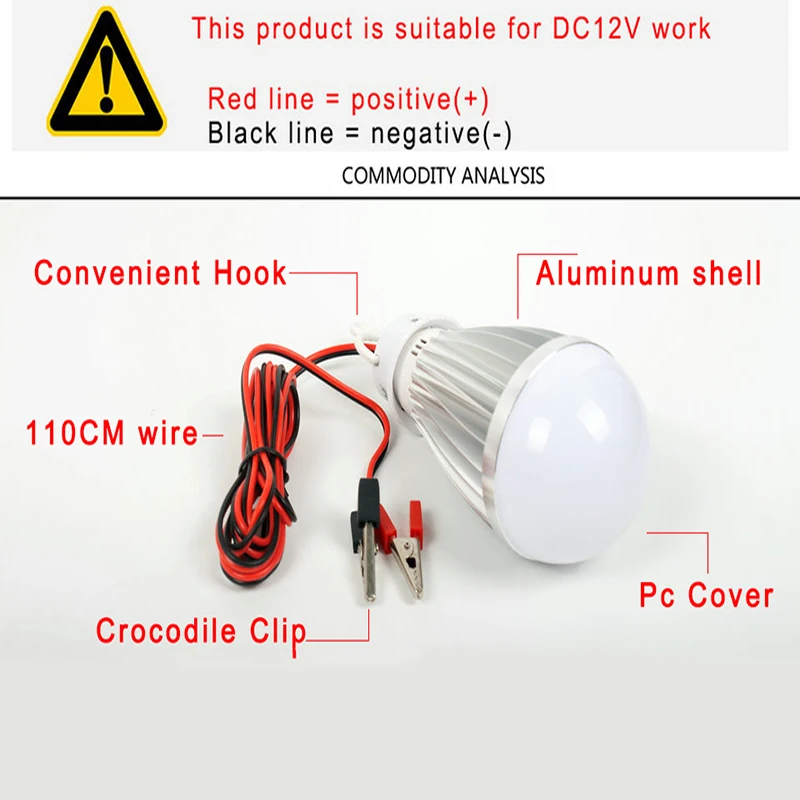 Светодиодная лампа 12 В постоянного тока, портативсветодиодный Светодиодная лампа 5 Вт, 7 Вт, 9 Вт, 12 Вт, SMD2835, Холодныйтеплый белый свет, фонасветильник для подвесной ночной рыбалки