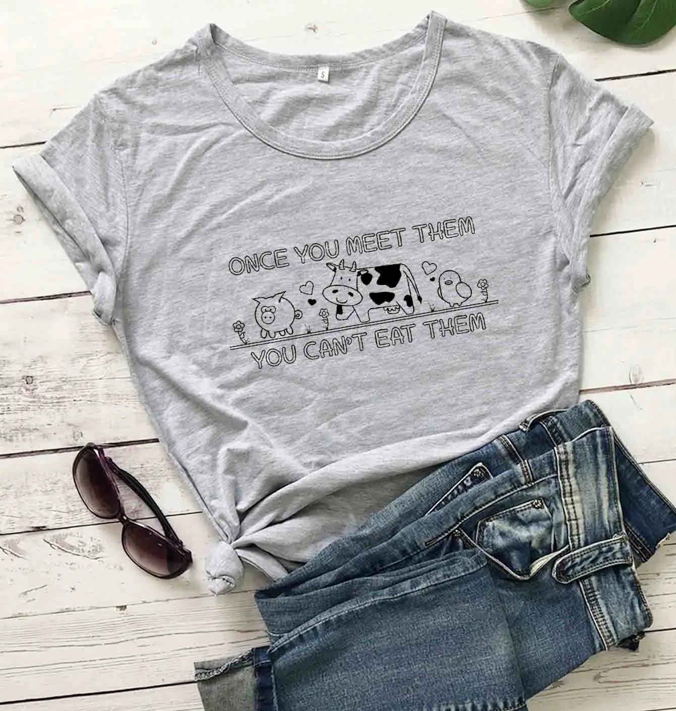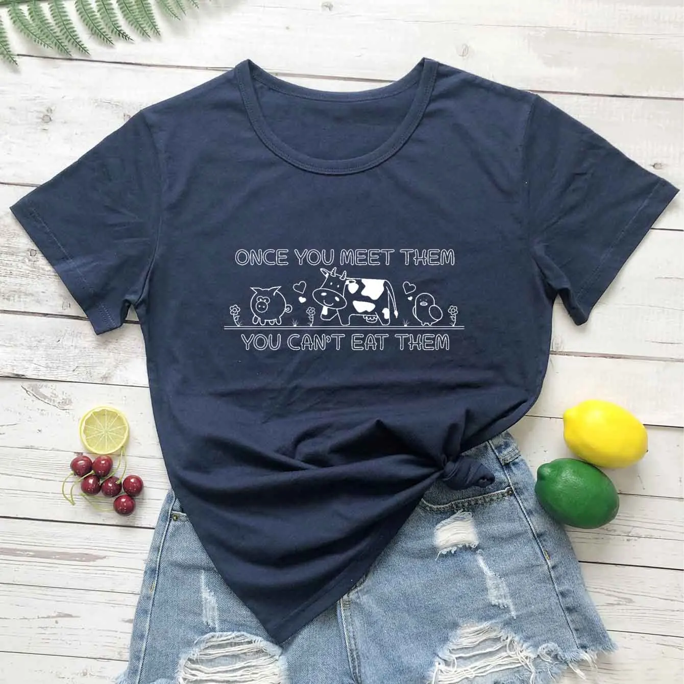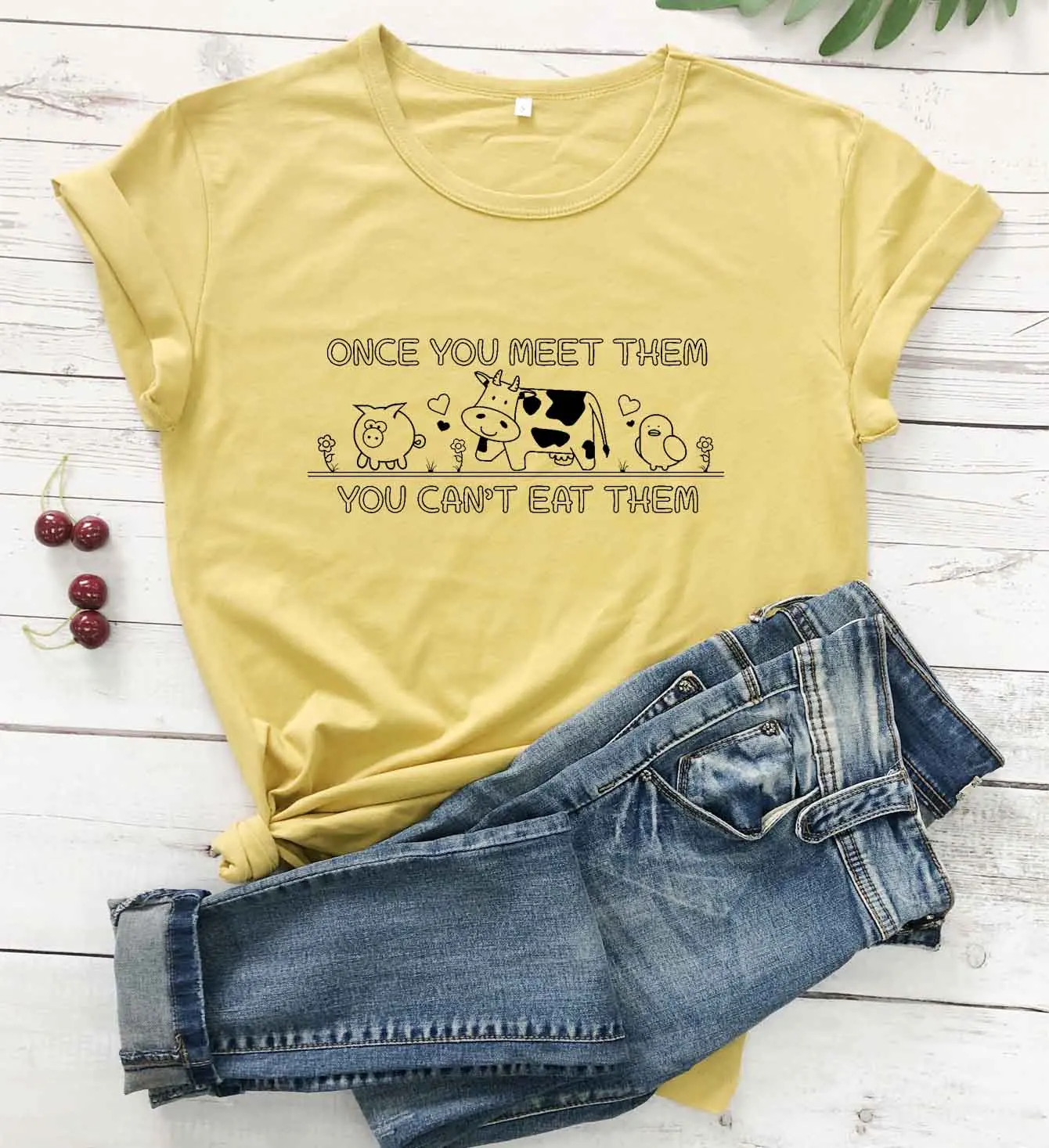 Как только вы познакомитесь с ними, вы не сможете съесть их, Вегетарианская забавная графическая Женская модная Ретро футболка унисекс