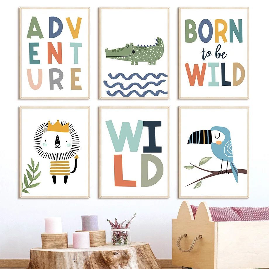 Плакаты и принты для детской комнаты, Лев, жираф, тигр, слон, носор...