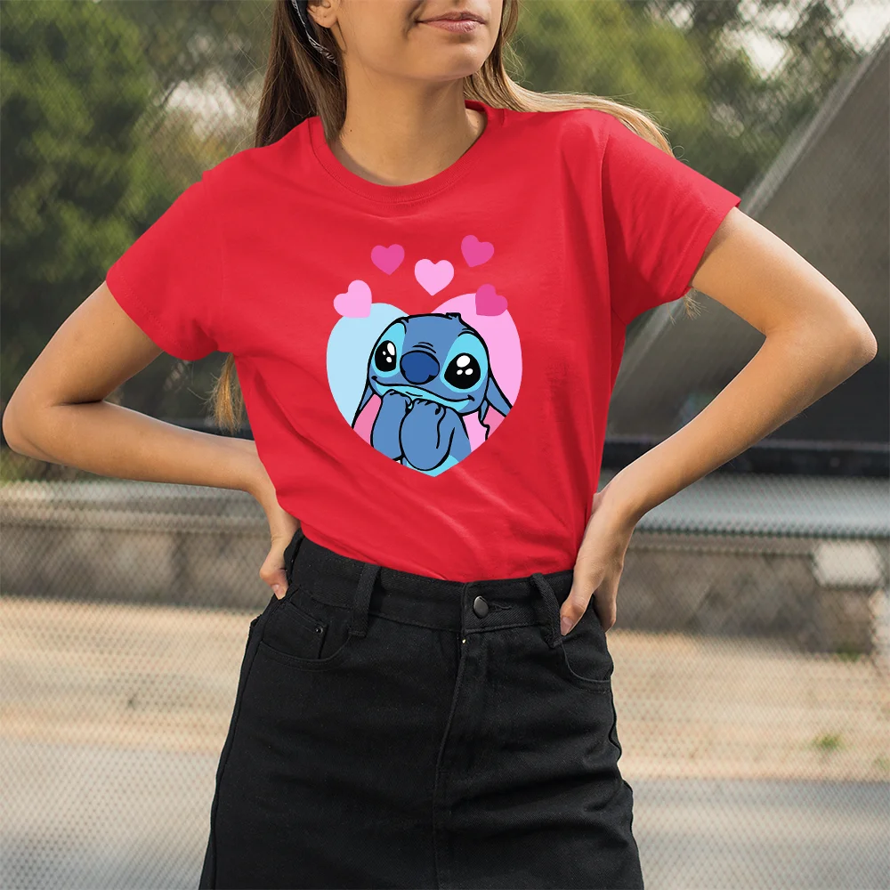 Женская футболка с принтом Disney Lilo Stitch Series, трендовые фу...