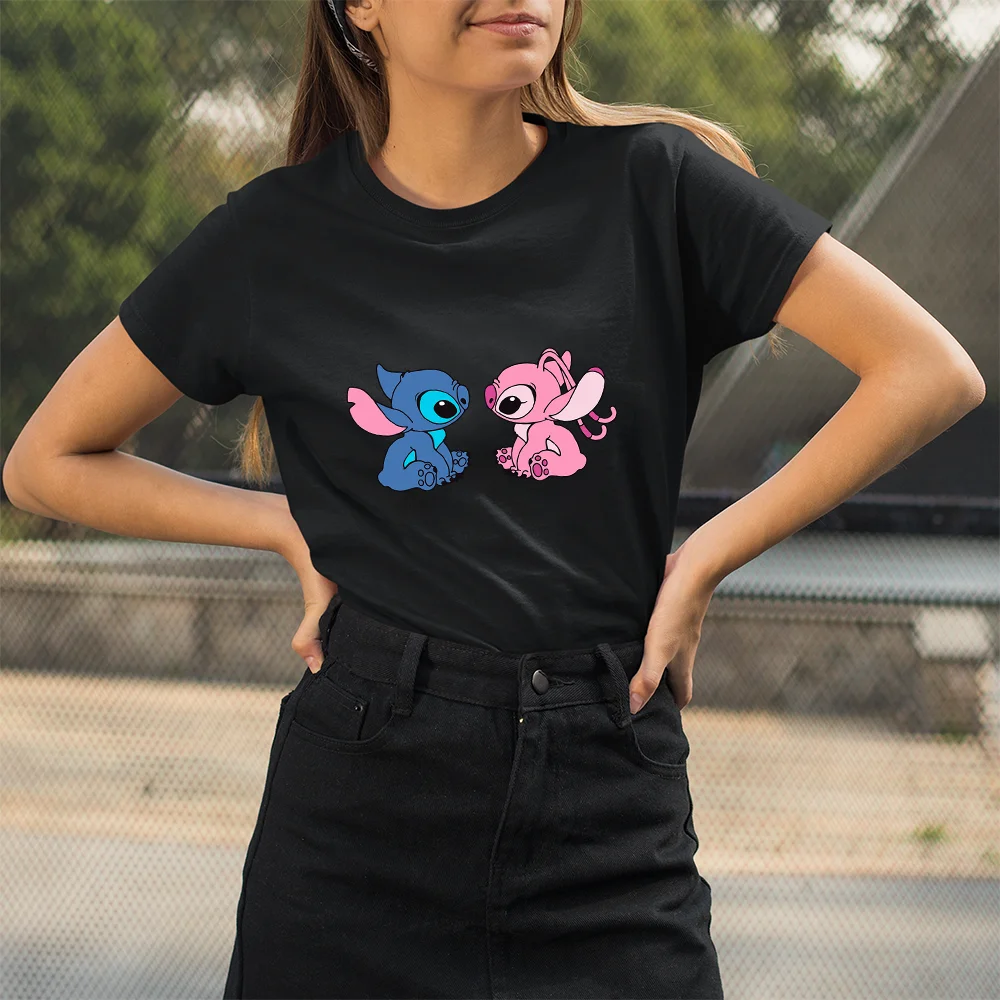Дисней летние новые женские футболки Kawaii Dropship черный, белый цвет Lilo amp; Stitch Cartoon Fashion повседневные футболки женский тренд Harajuku