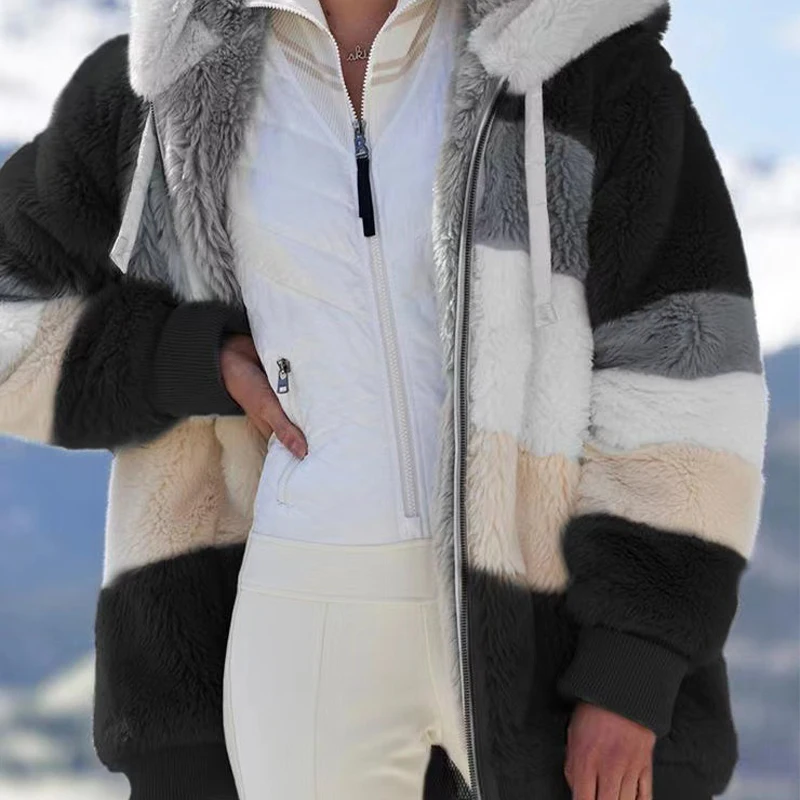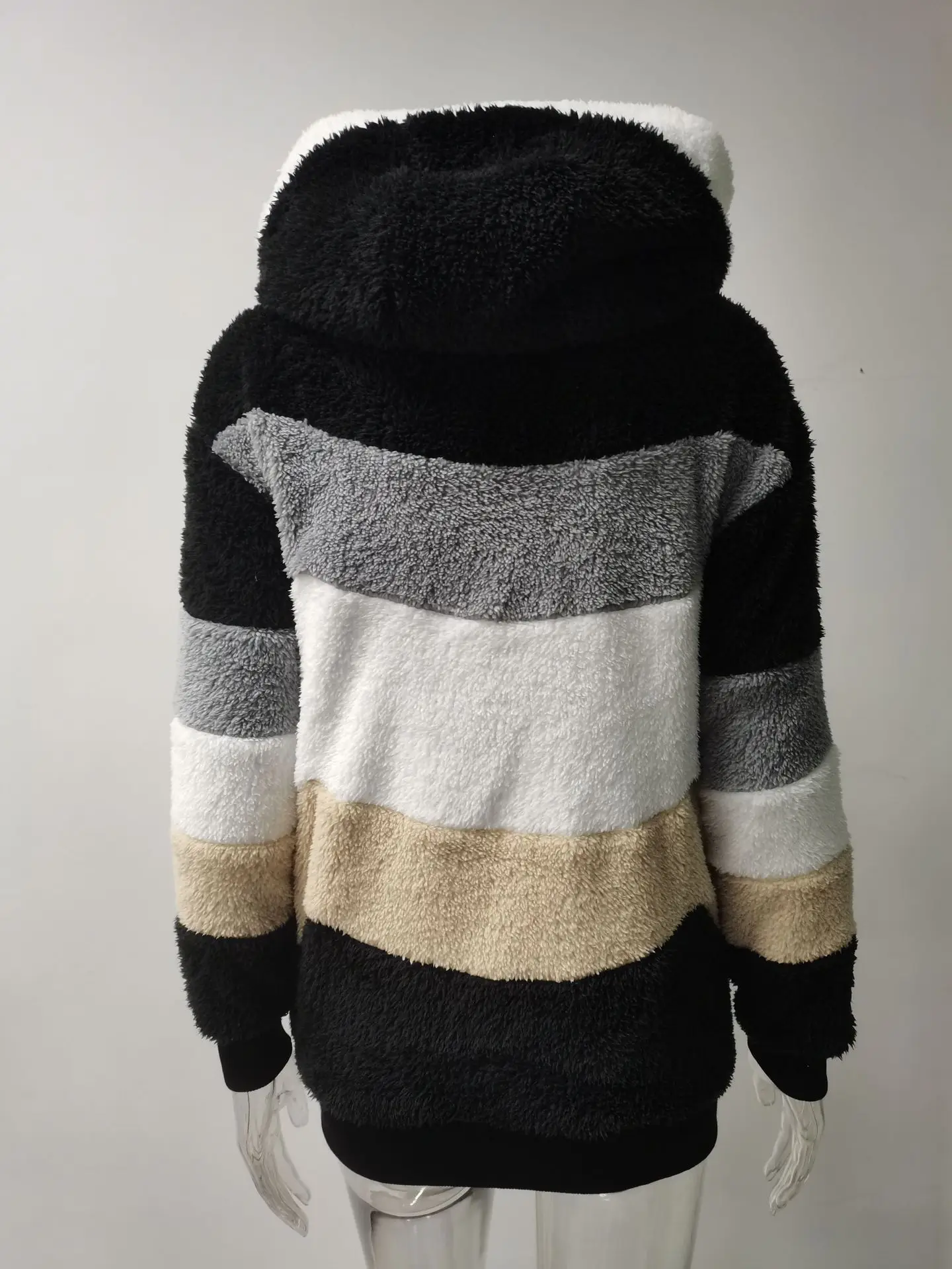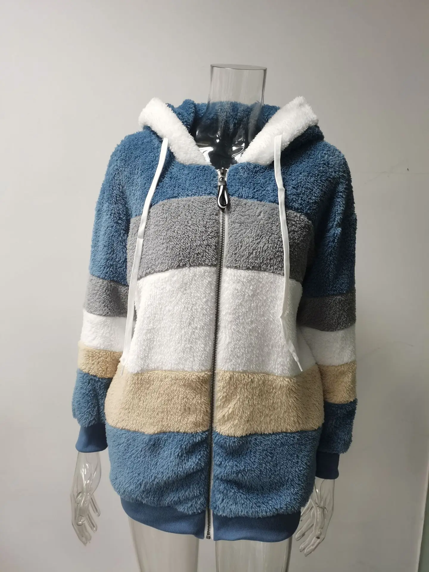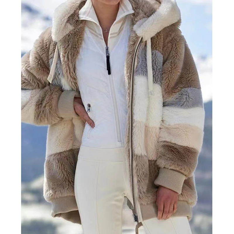 Женское повседневное пальто из искусственного меха на молнии, в полоску