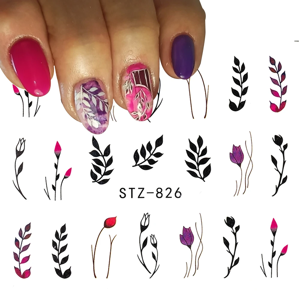 1 шт., наклейки для ногтей с изображением цветов, Листьев, дерева