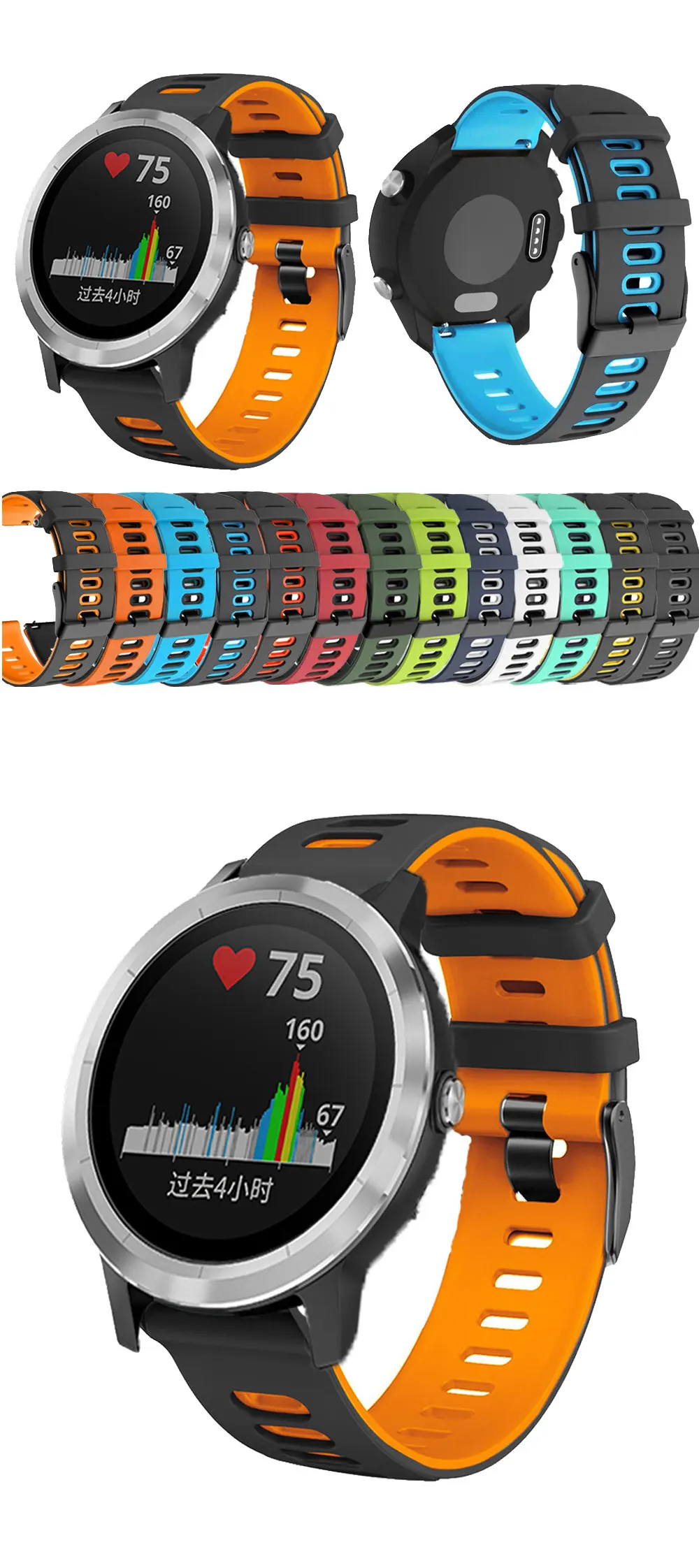 Мягкие спортивные силиконовые ремешки для смарт-браслета Garmin Vivoactive 34 Forerunner 645 245 CAME 2Plus 2022 мм