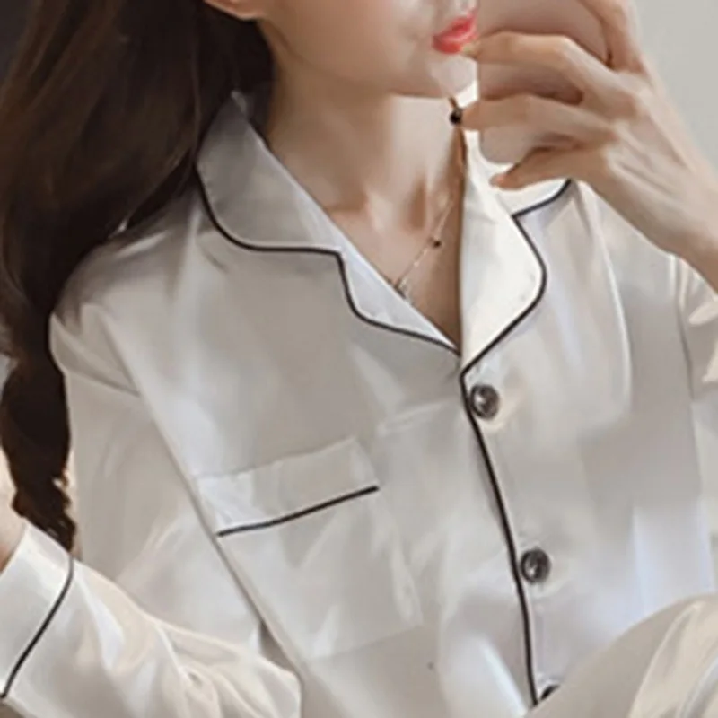Пижамный комплект Женский атласный из двух предметов, Шелковая гладкая Пижама, пикантная Домашняя одежда, Топ с длинным рукавом и штаны, комплекты одежды для сна на осень