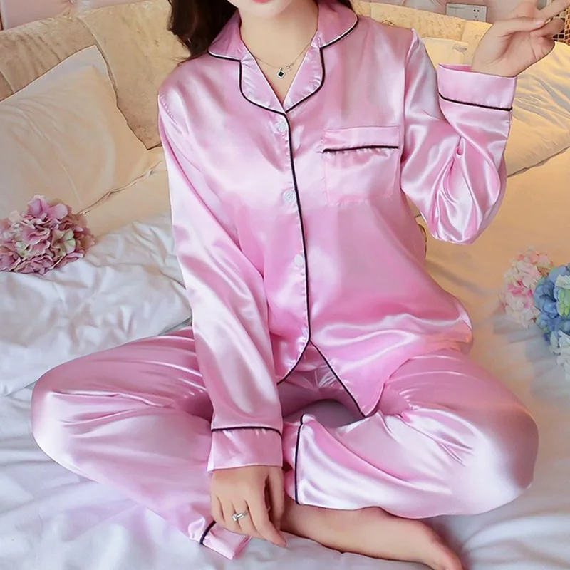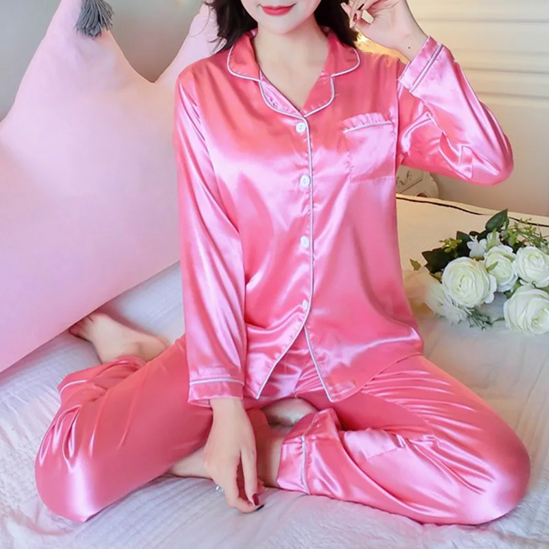 Женский Атласный пижамный комплект, повседневная элегантная одежда ...