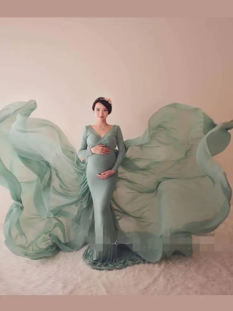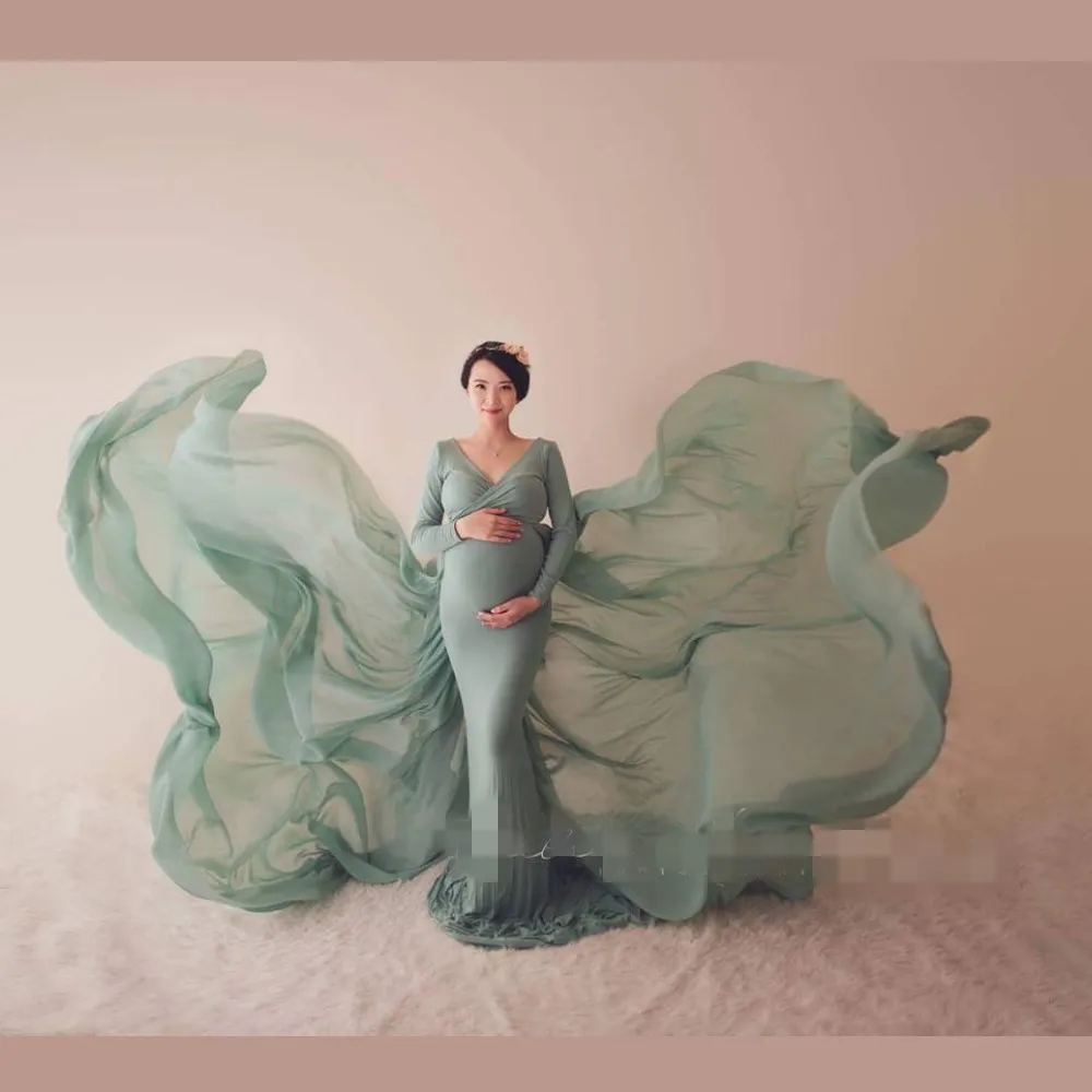 Элегантное платье с длинным рукавом Русалка платья для беременных с V-образным вырезом на заказ длинное официальное платье для беременных платье для фотографии платье для выпускного вечера