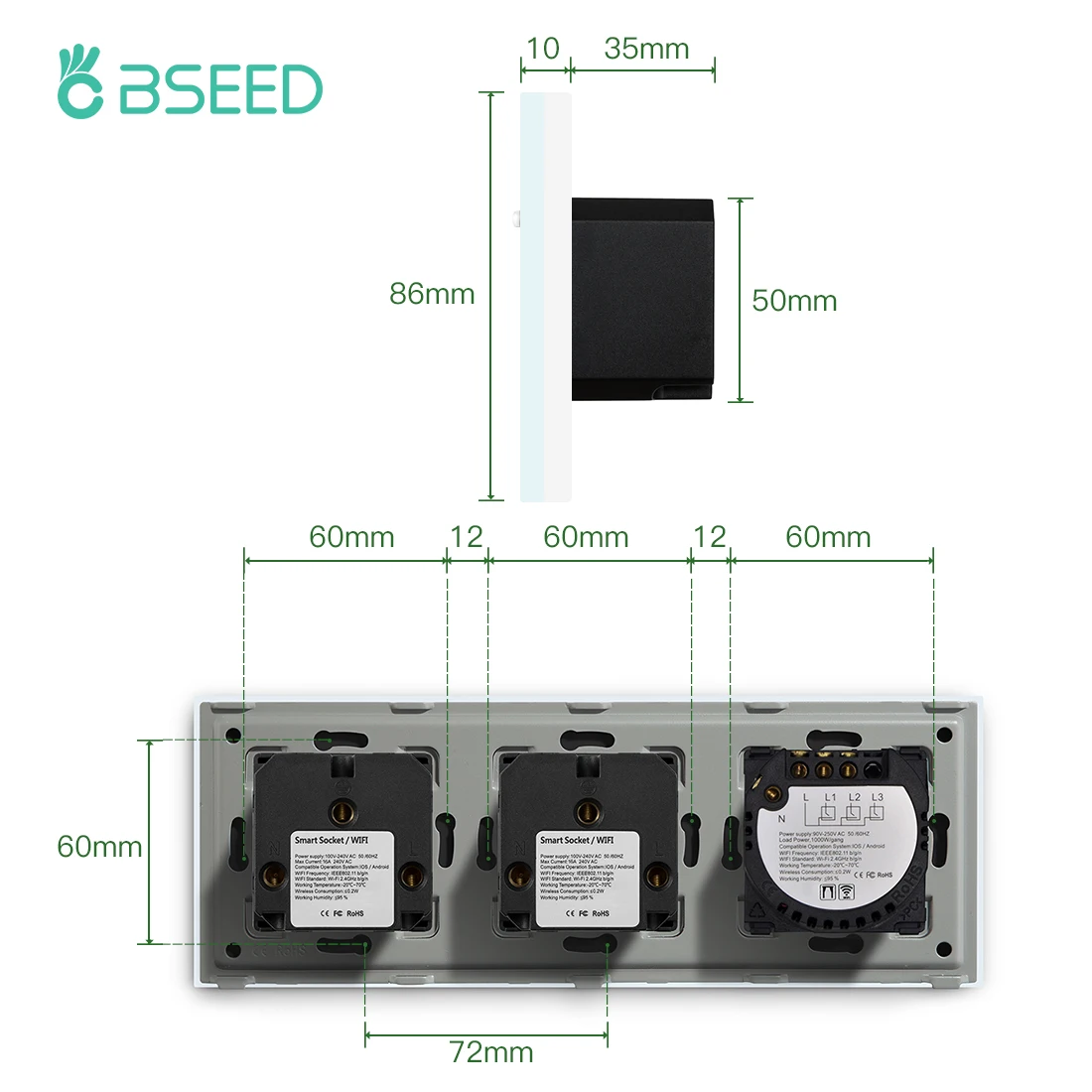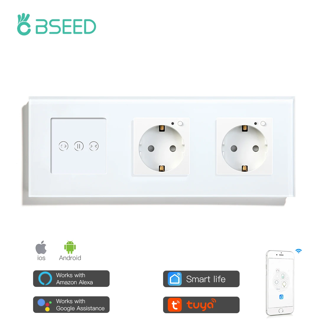 BSEED Wifi занавес переключатель Tuya Smart Life приложение WIFI Двойные розетки ЕС закаленное стекло Google Alexa Голосовое управление сенсорный настенный выключатель