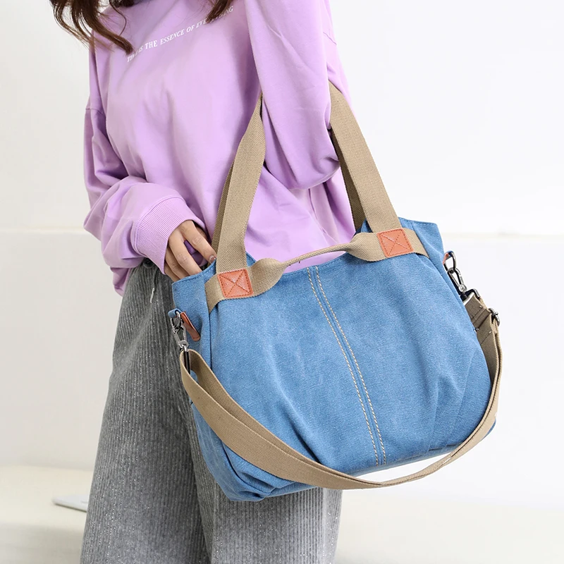 Повседневная легкая портативная женская сумка-тоут, холщовая Сумочка через плечо, вместительный саквояж для женщин