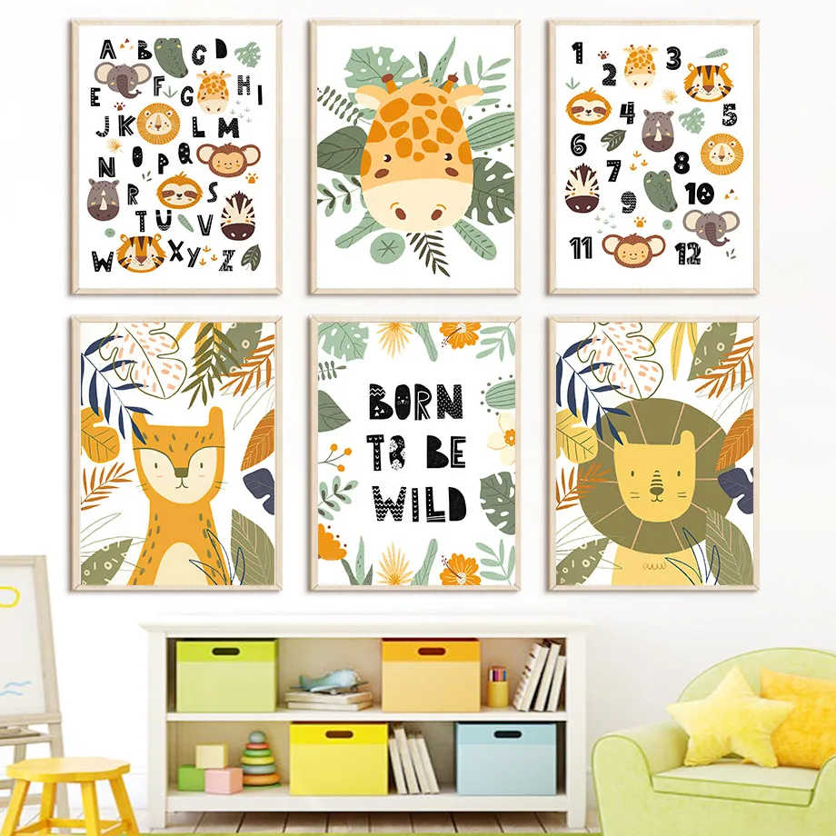 Плакаты и принты с изображением жирафа, тигра, животных, цифр, алфа...