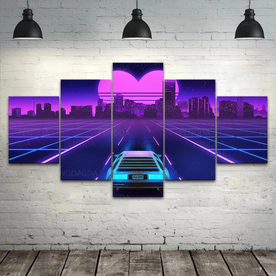 HD Печать красочный автомобиль абстрактный Ночной пейзаж холст картина стены искусства киберпанк постер домашний Декор Спальня модульные картины рамка