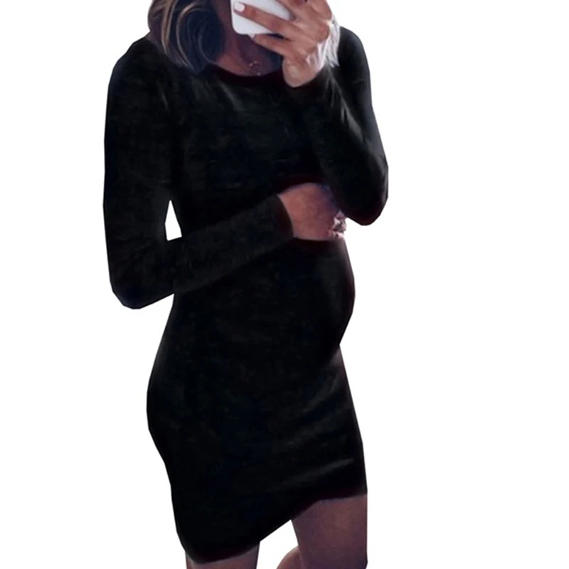 Платья для беременных с длинным рукавом облегающее Повседневное платье домашняя одежда для мам платье для беременных осенние женские платья