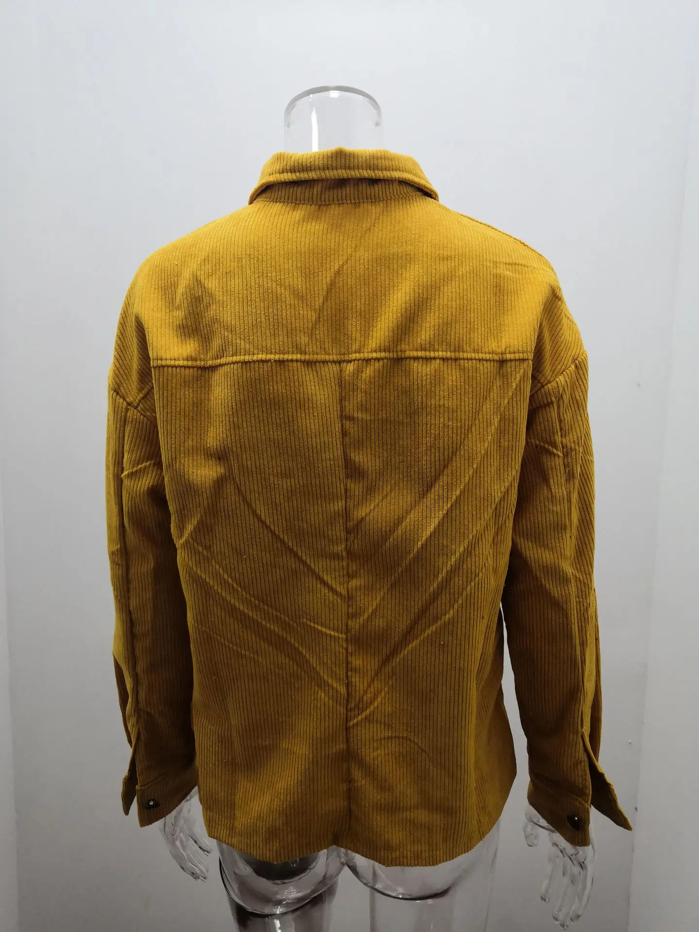 Женская Вельветовая куртка с длинным рукавом и отложным воротником