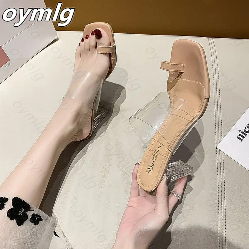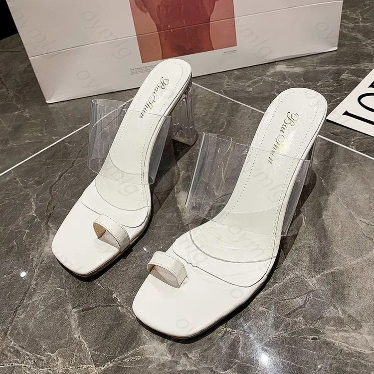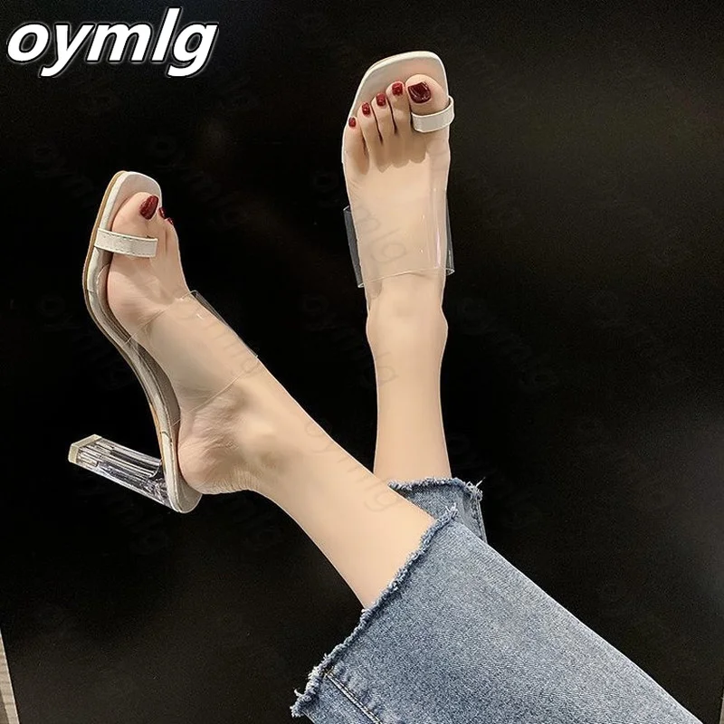 Пикантные туфли на высоком каблуке, женские туфли на прозрачном каблуке из ПВХ, женские сандалии-шлепанцы, вечерние свадебные туфли с открытым носком