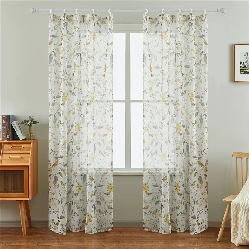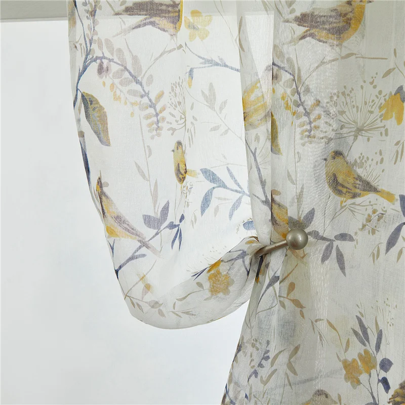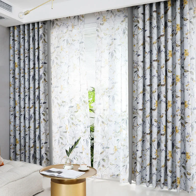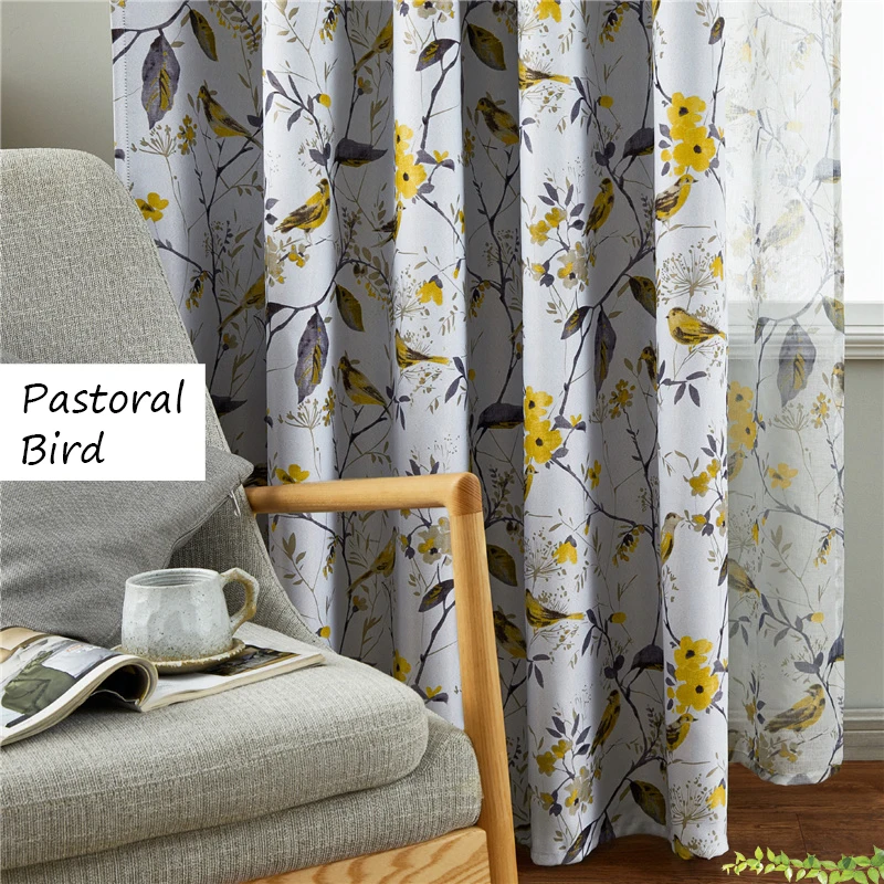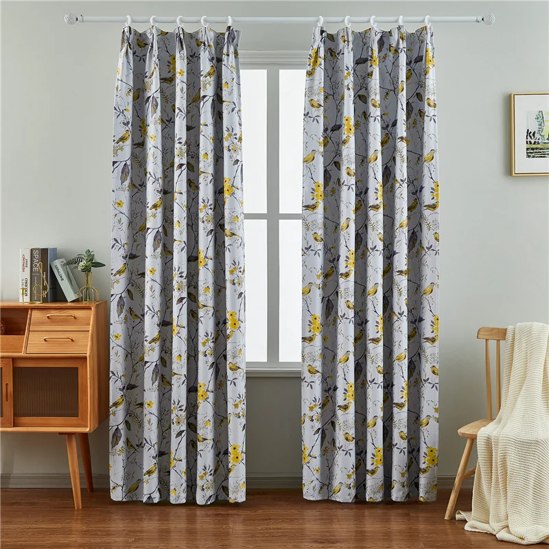 Светонепроницаемые занавески с изображением цветов и птиц для гостиной, кухни, тюлевые занавески, тканевая лента с крючками, люверсы, кольца, верхний размер на заказ
