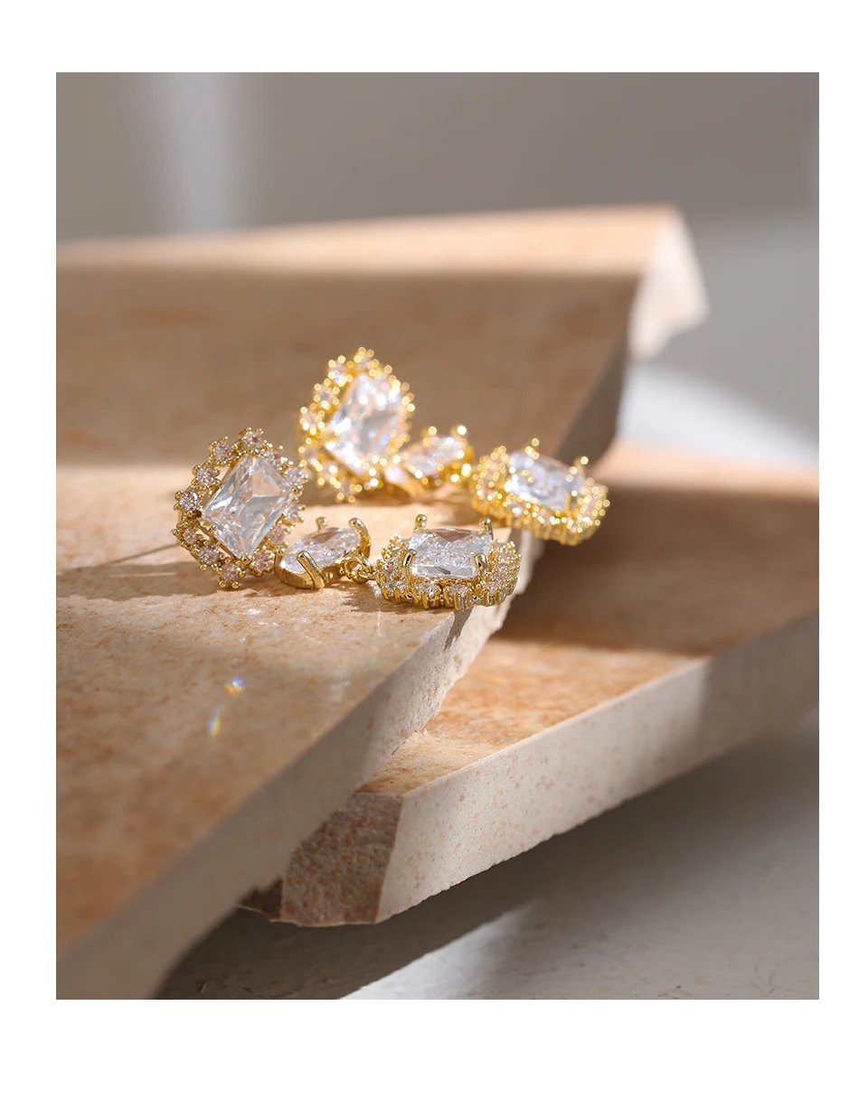 Характерные серьги из фианита Yhpup, 14 к медные Свадебные изысканные серьги, 2021 бижутерия, аксессуары в подарок
