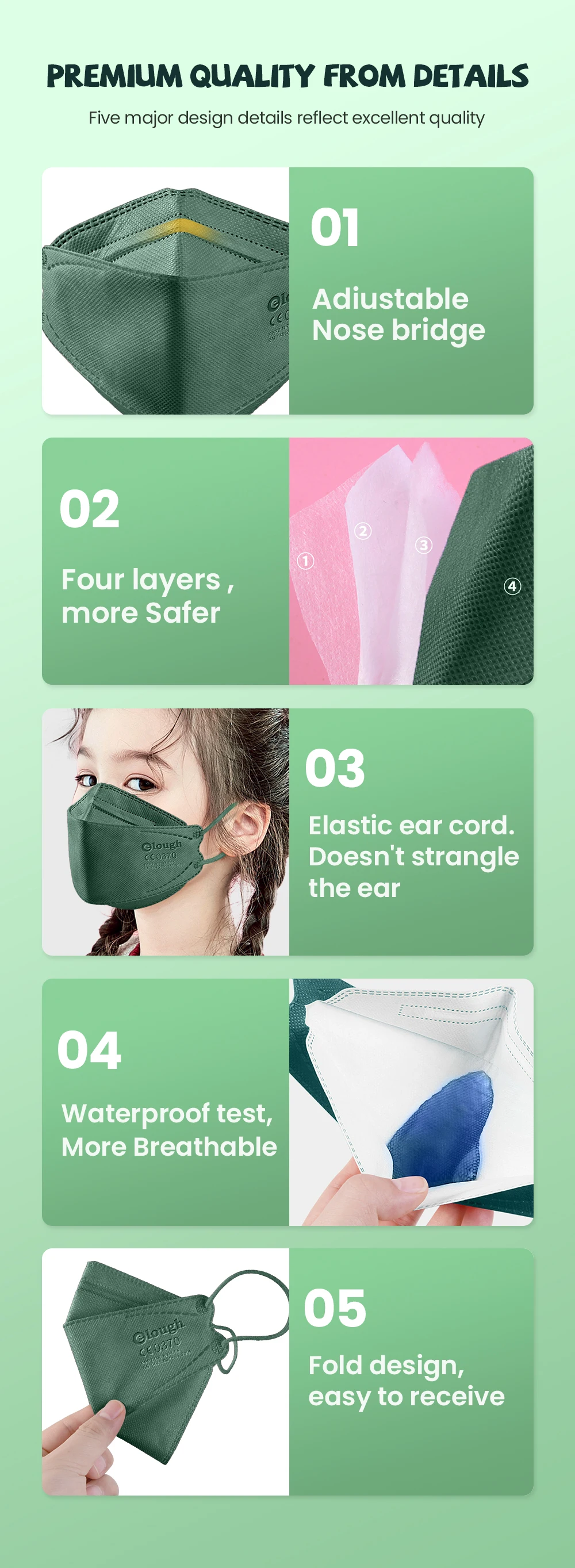 Elough KN95 детская FFP2 маска FPP2 для детей сертифицированная Кор...