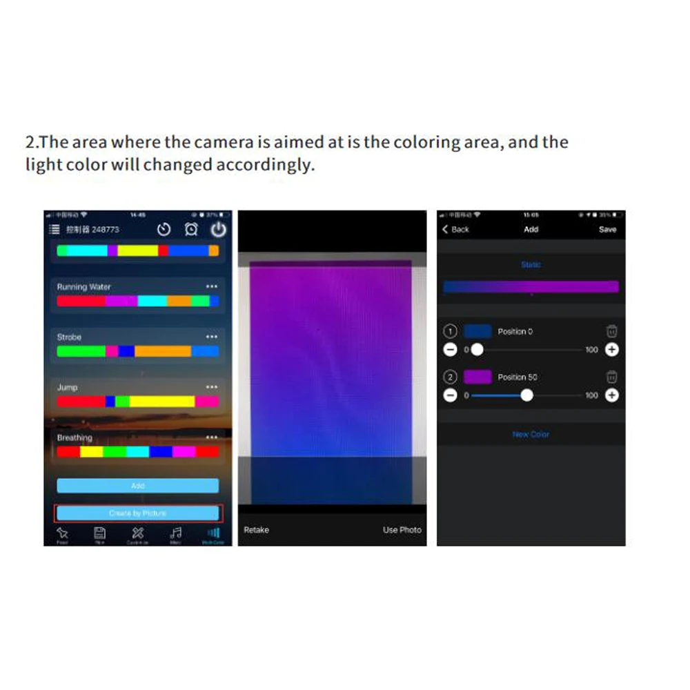 Здесь вы можете найти контроллер WiFi через интернет из любой точки мира. В режиме WiFi (режим подключения (a). Держите роутер Wi-Fi в сети, независимо от того, где вы находитесь, вы все еще можете управлять своим светом с помощью приложения, пока есть Wi-Fi/3G/4G интернет для вашего смартфона.