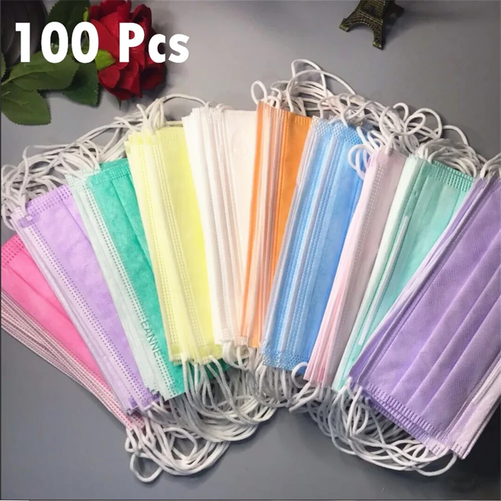 Маска цветная трехслойная одноразовая для лица, 10-100 шт.