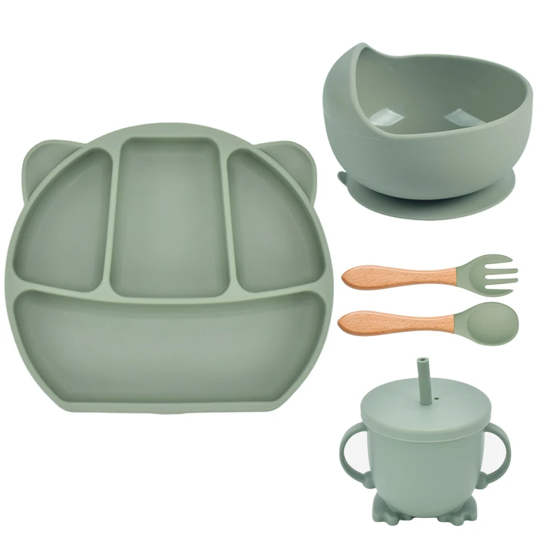 Набор детских силиконовых тарелок для кормления, чашка с соломинкой...