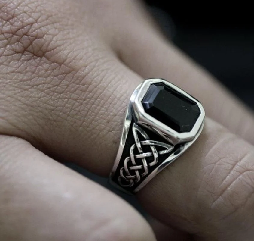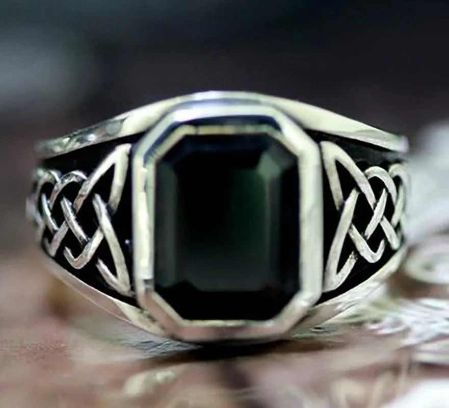 Мужское Винтажное кольцо с черными драгоценными камнями