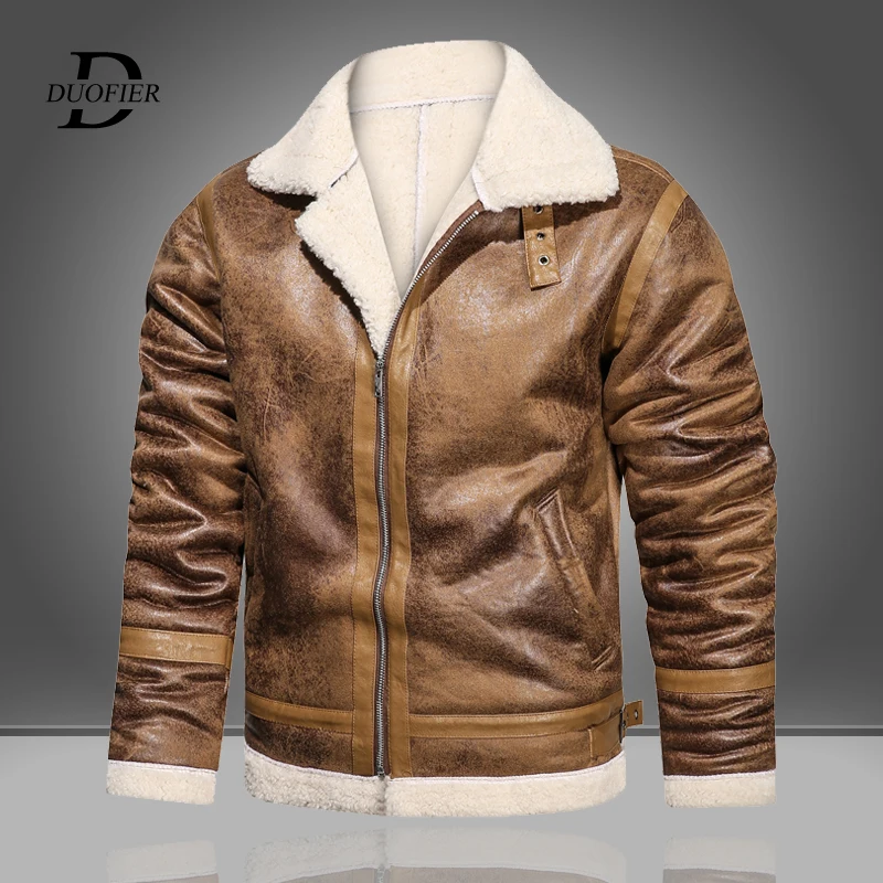 Мужская Зимняя коллекция 2022, флисовая Толстая кожаная куртка, Мот...
