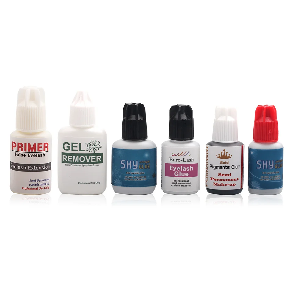 -----------------------------------------------------------* Товар: праймер для клея* Емкость: 15 мл/бутылка* Цвет: прозрачный* Использование:Делает клей прочнее, быстрее сохнет, предотвращая побеление клея. Держат ресницы дольше.* Примечание:1. Перед наращиванием ресниц распылите праймер на корни накладных ресниц;2. Не смешивайте и не храните с клеем, он вызывает высыхание клея.-----------------------------------------------------------* Товар: клей для ресниц* Время высыхания: от 1 до 4 секунд;* Емкость: 5g или 10 г/бутылка* Поддержка или удержание более 8 недель.* Срок годности: 6 месяцев не открывается, 2 месяца после открытия.* Лучше взболтать в течение 2 минут перед использованием.-Женский черный клей, особенно для чувствительной кожи с низким содержанием дыма.-S + небо клей для наращивания ресниц 5 мл (красная крышка) 1-2S быстро сохнет. Пожалуйста, перед использованием сделайте тест на кожу.------------------------------------------------------------* Товар: гель для снятия клея для наращивания ресниц* Цвет: прозрачный цвет* Емкость: 15 г/бутылка* Применение: быстро и легко удаляет накладные ресницы, не повреждая их натуральными.Жидкость для снятия геля ложится на ресницы, разрушая клей.------------------------------------------------------------* Товар: средство для очистки ресниц* Цвет: прозрачный цвет* Емкость: 30 г/бутылка* Применение: очищает ресницы, руки, инструменты для макияжа, удаляет грязь и пыль, масло и т. д., сохраняет здоровье и чистоту.