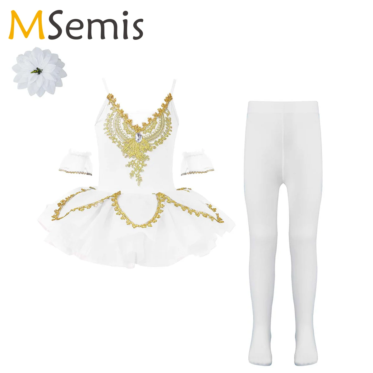 Белая балетная юбка-пачка, балетное платье, балетные чулки, Детский костюм лебедя, детские танцевальные костюмы для соревнований, профессиональные сценические костюмы