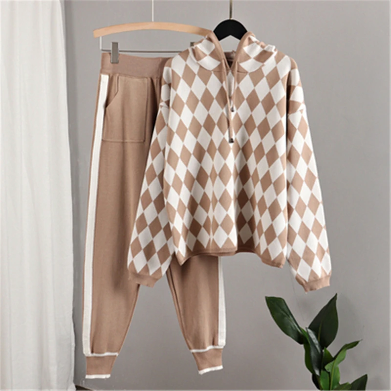 Спортивный комплект для женщин, вязаный спортивный костюм, свободны...
