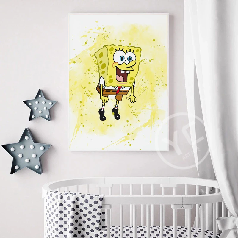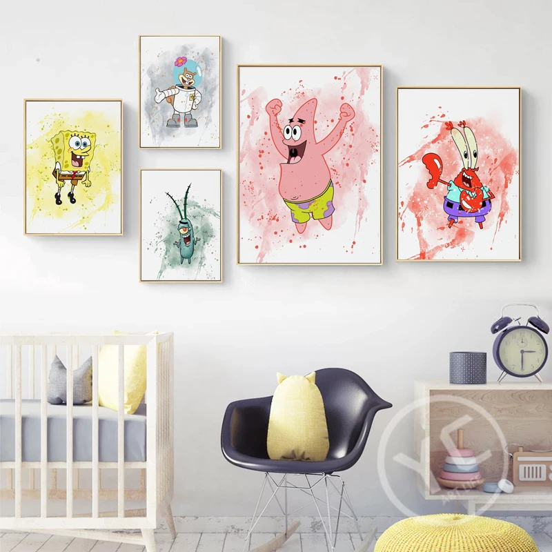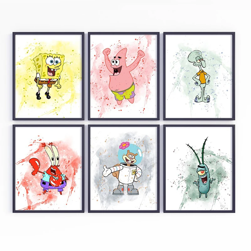 Постер с акварельными принтами Губка Боб Патрик Сквидвард настенная живопись на холсте домашний декор идеальный подарок для любителей губки боба