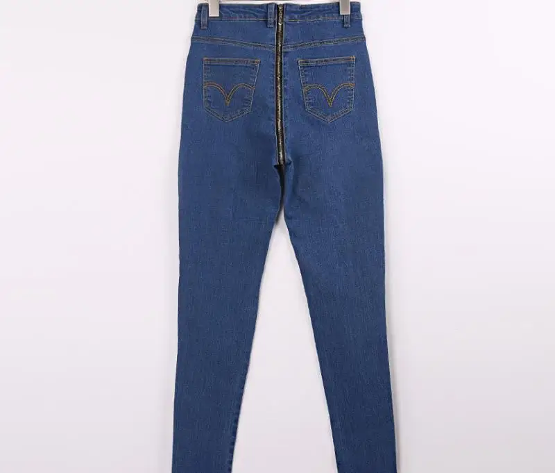 Джинсовые брюки, эластичные Стрейчевые джинсы, сексуальные длинные джинсы с молнией сзади, женские классические узкие джинсы с высокой талией, светло-голубые