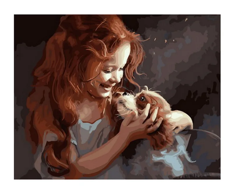 Набор для рисования по номерам на холсте Девочка с собакой, 4050 см