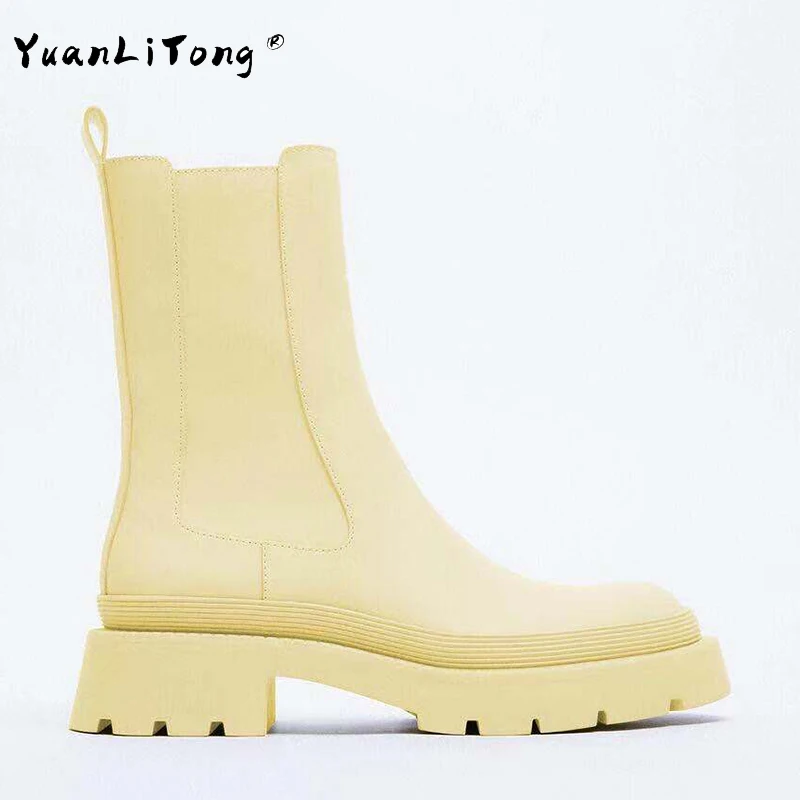 Женские ботинки-Челси ZA, короткие сапоги на толстой подошве, до се...