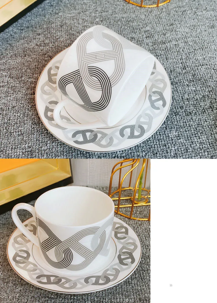 2021 VIP, Прямая поставка, элегантная Золотая кофейная чашка H Mark высшего класса из костяного фарфора, Европейский набор чайных чашек и блюдце для послеобеденного чая, кофе