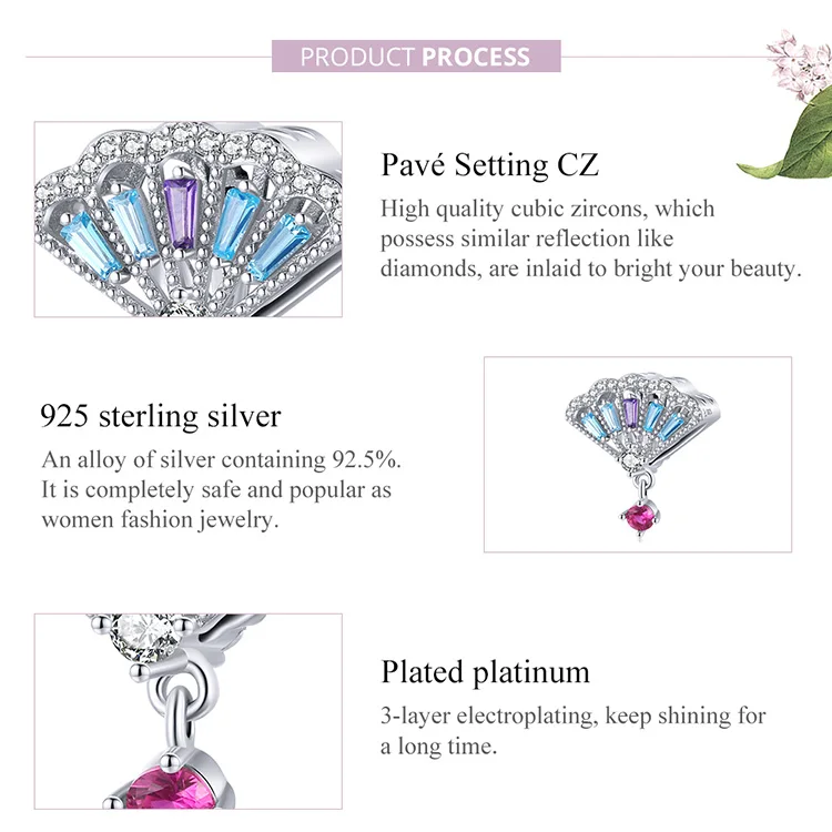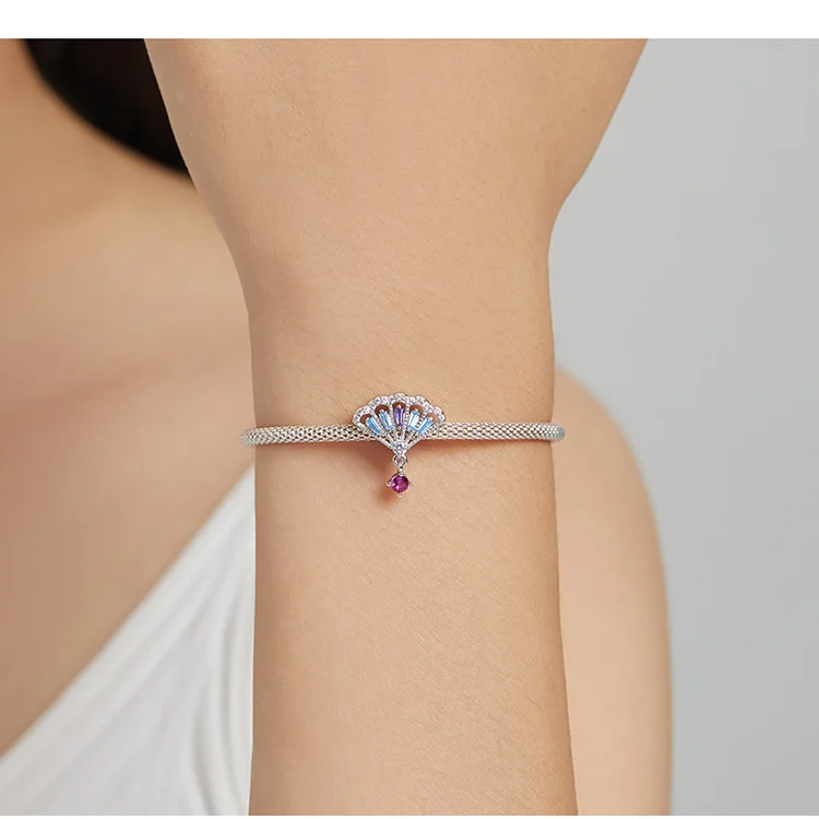 Подвеска из серебра 925 пробы в виде китайского веера для браслета