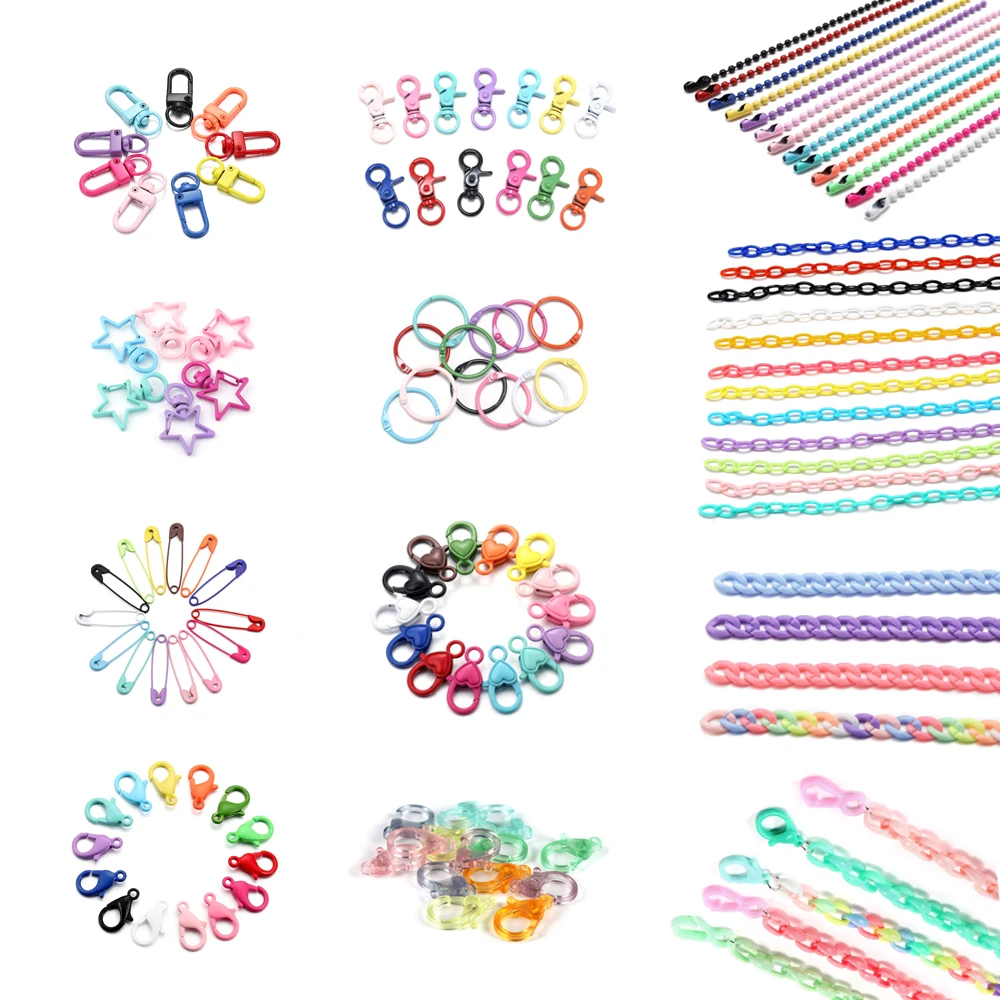 Разноцветные смешанные застежки-карабины для омаров, булавки, крючки, Шаровые Цепи, брелки для самостоятельного изготовления ювелирных изделий, аксессуары